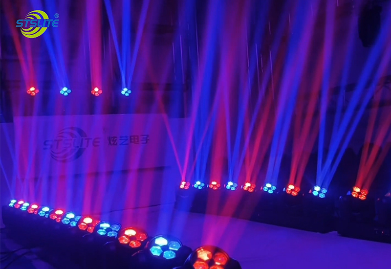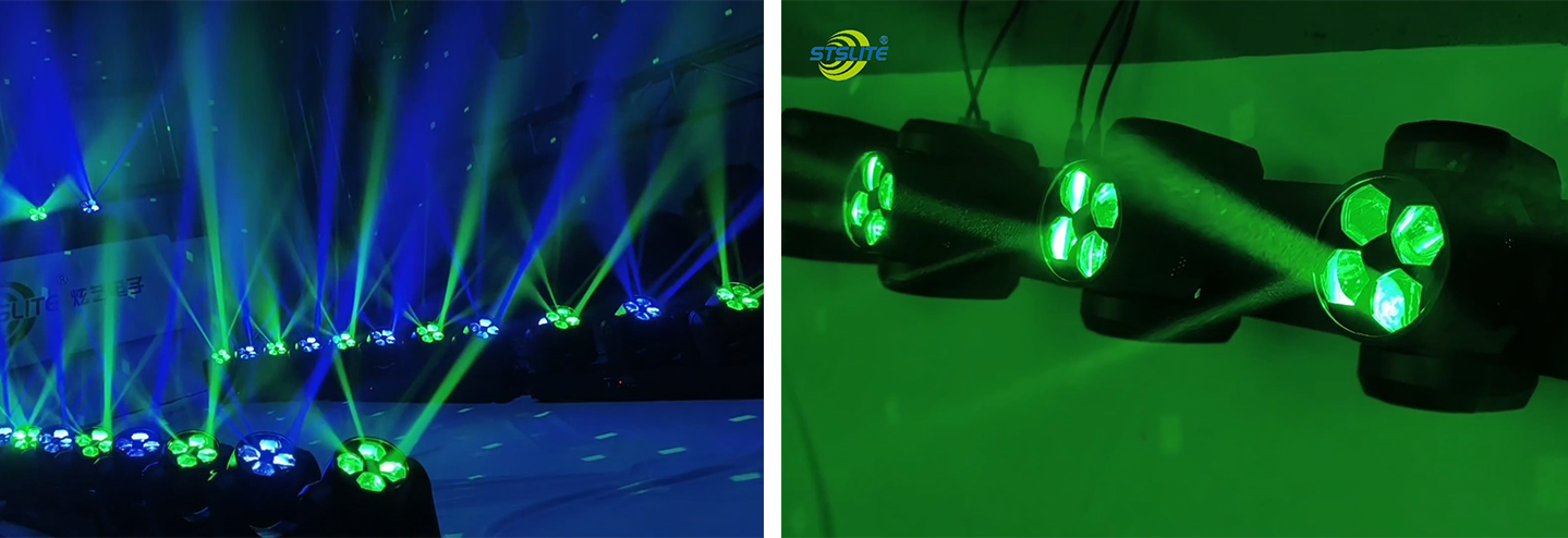 ◈16 × 15W SMD 6065 QCL 4-in-1 RGBW LEDs per head ◈Beam angle: 2°–55° adjustable ◈4 individually controllable moving heads with flower & beam effects ◈Lens rotation capability |